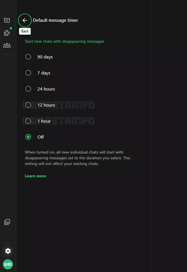 Aktarılanlara nazaran WhatsApp Web’de kaybolan iletiler için 1 saat ve 12 saat olmak üzere iki yeni mühlet seçeneği sunulacak. Bu seçenekler, sırf kısa bir müddet geçerli olan bilgilerin sohbet geçmişinde gereksiz yere kalmasının önüne geçmeyi amaçlıyor.